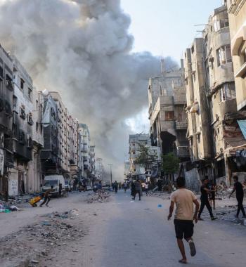 Fires erupt after an Israeli strike targets the internal medicine and surgery departments at Nasser Medical Complex in Khan Younis.